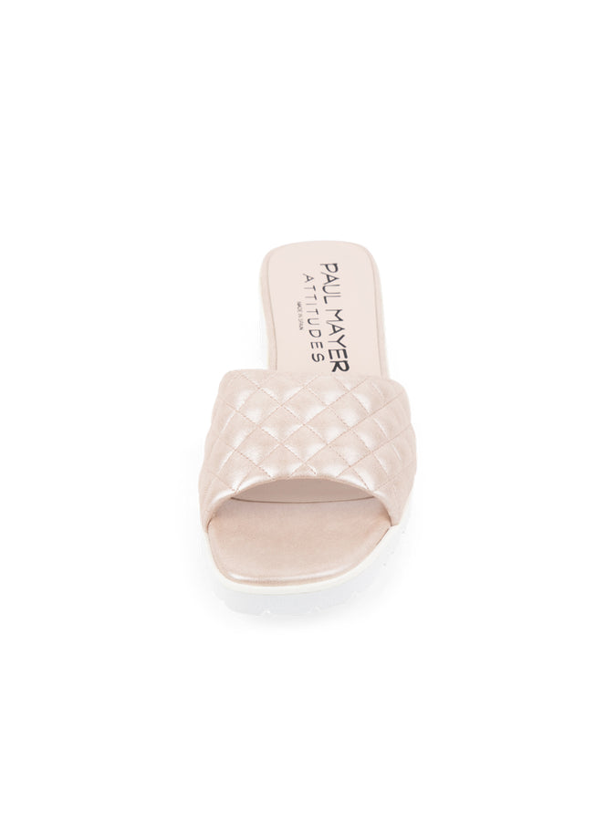 Paul Mayer Women’s Park Quilted Lug Sole Sandal in Metallic Pearl